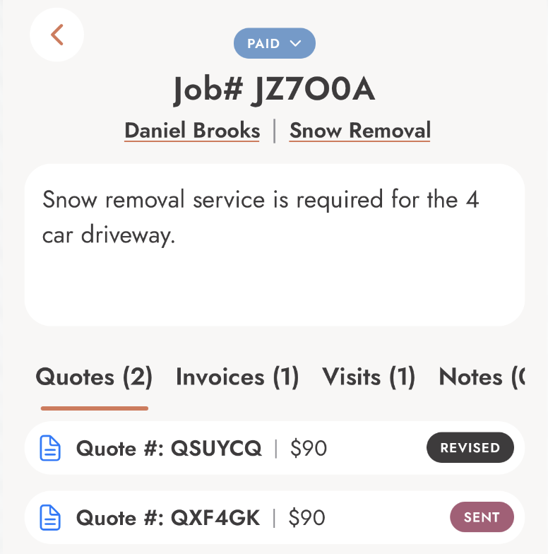 Quotes, invoices, visits, and notes — all organized under the job, right where you need them.