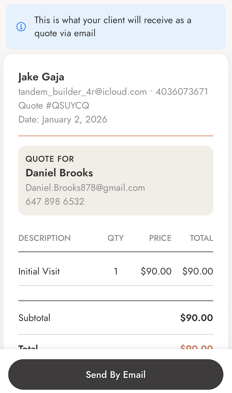 Send quotes directly from the app and preview exactly what your client will see before it goes out.